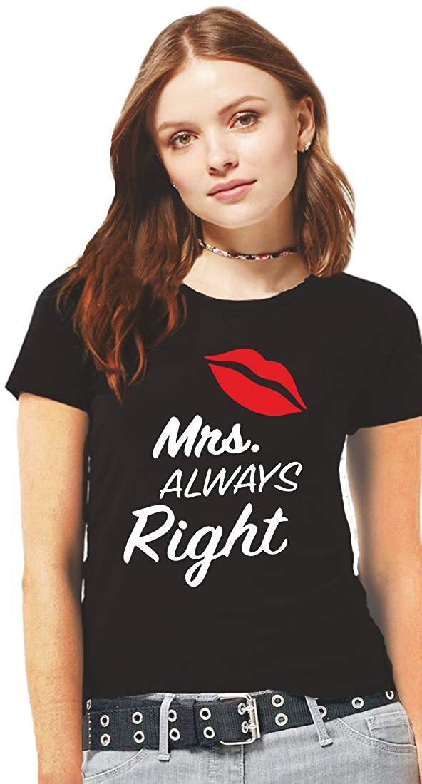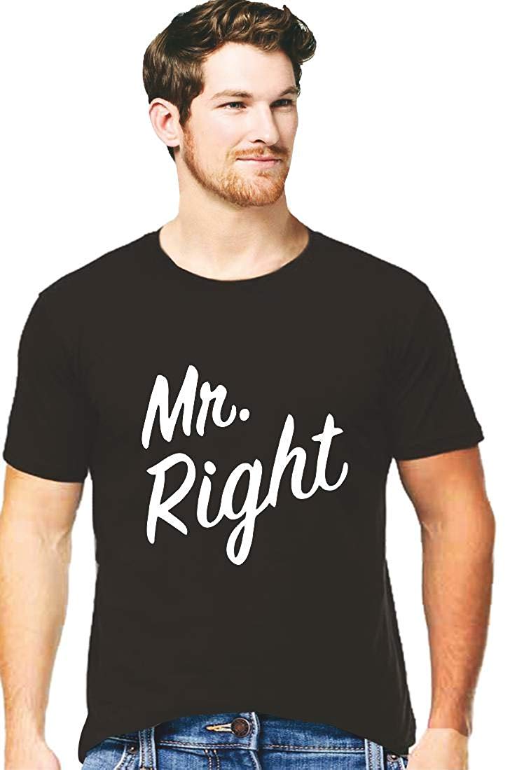 DOUBLE F BLACK COLOR MR. RIGHT MRS. ALWAYS RIGHT PRINTED COUPLE T-SHIRT FOR MEN