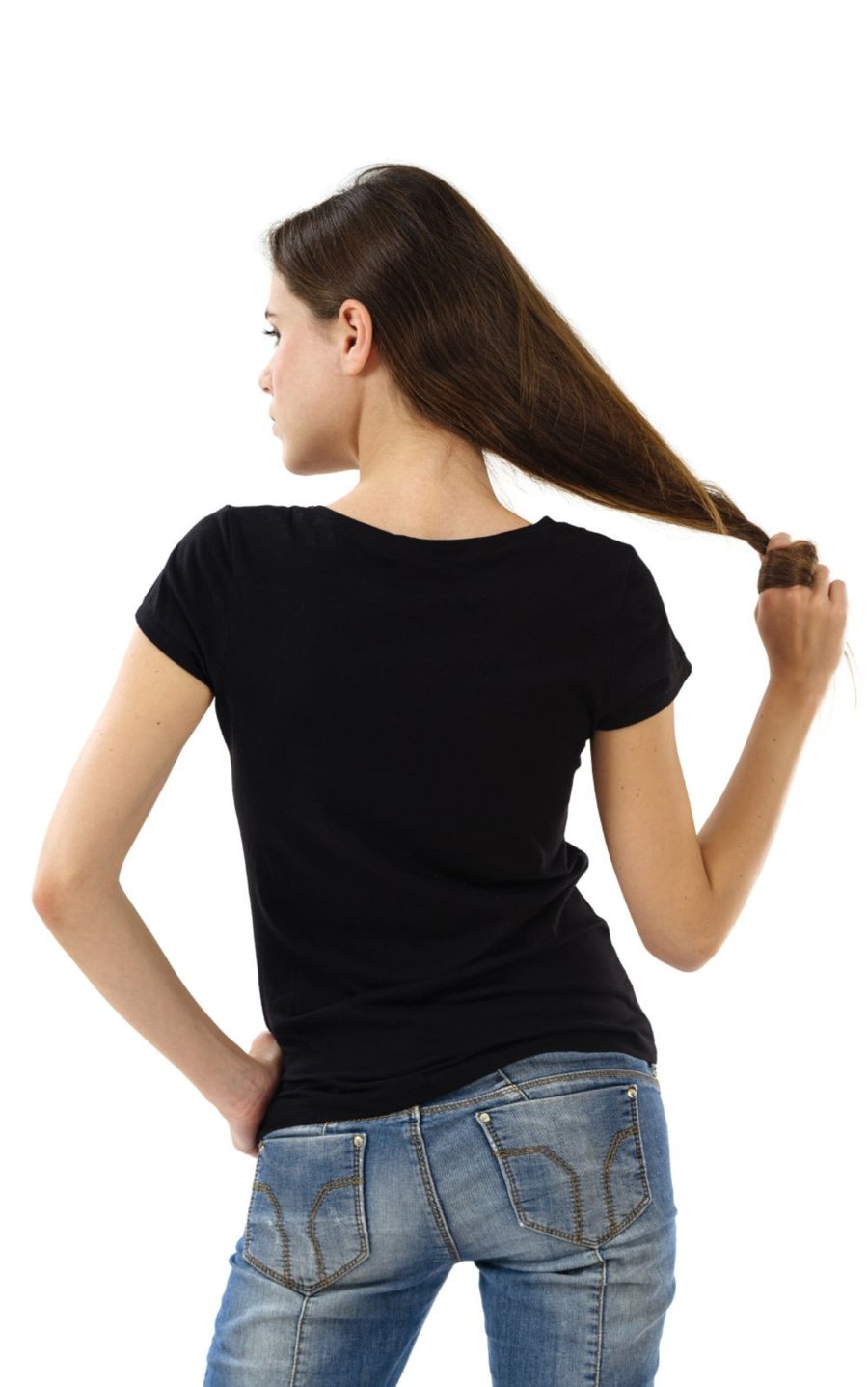 DOUBLE F ROUND NECK HALF SLEEVE BLACK COLOR PLAIN T-SHIRT FOR WOMEN