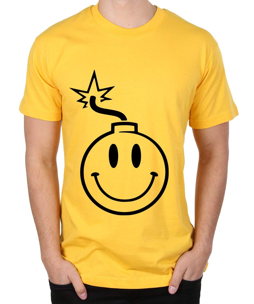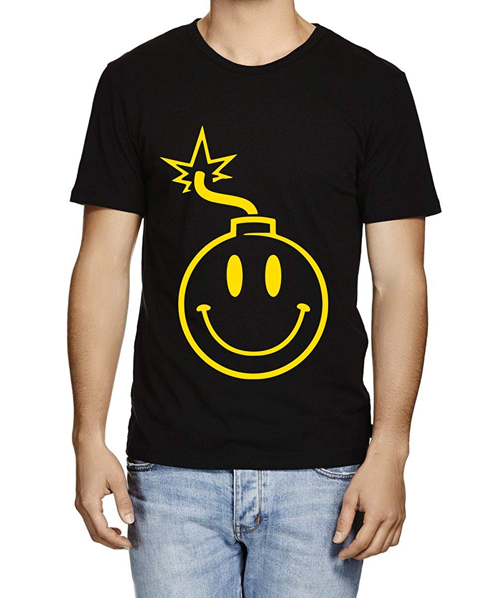 DOUBLE F ROUND NECK HALF SLEEVE SMILY BOMB WITH 07 COLORS PRINTED T-SHIRT FOR MEN