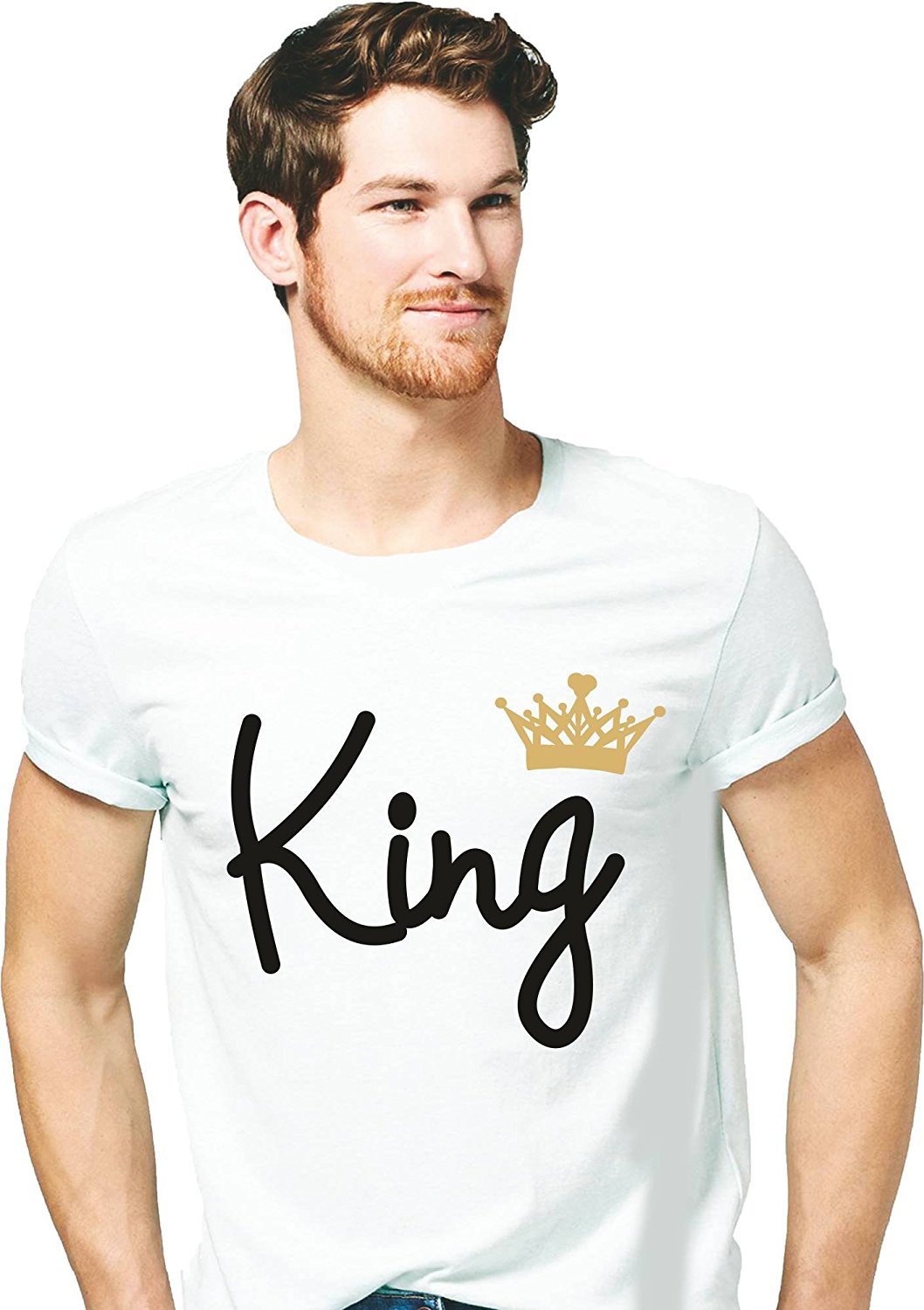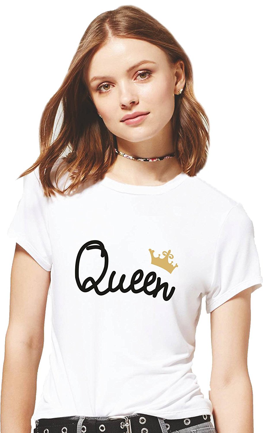 DOUBLE F WHITE COLOR KING QUEEN PRINTED COUPLE T-SHIRTS