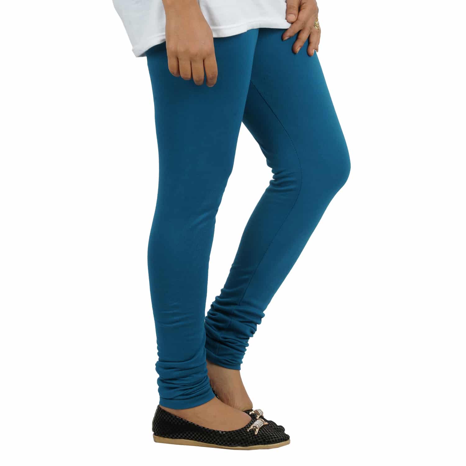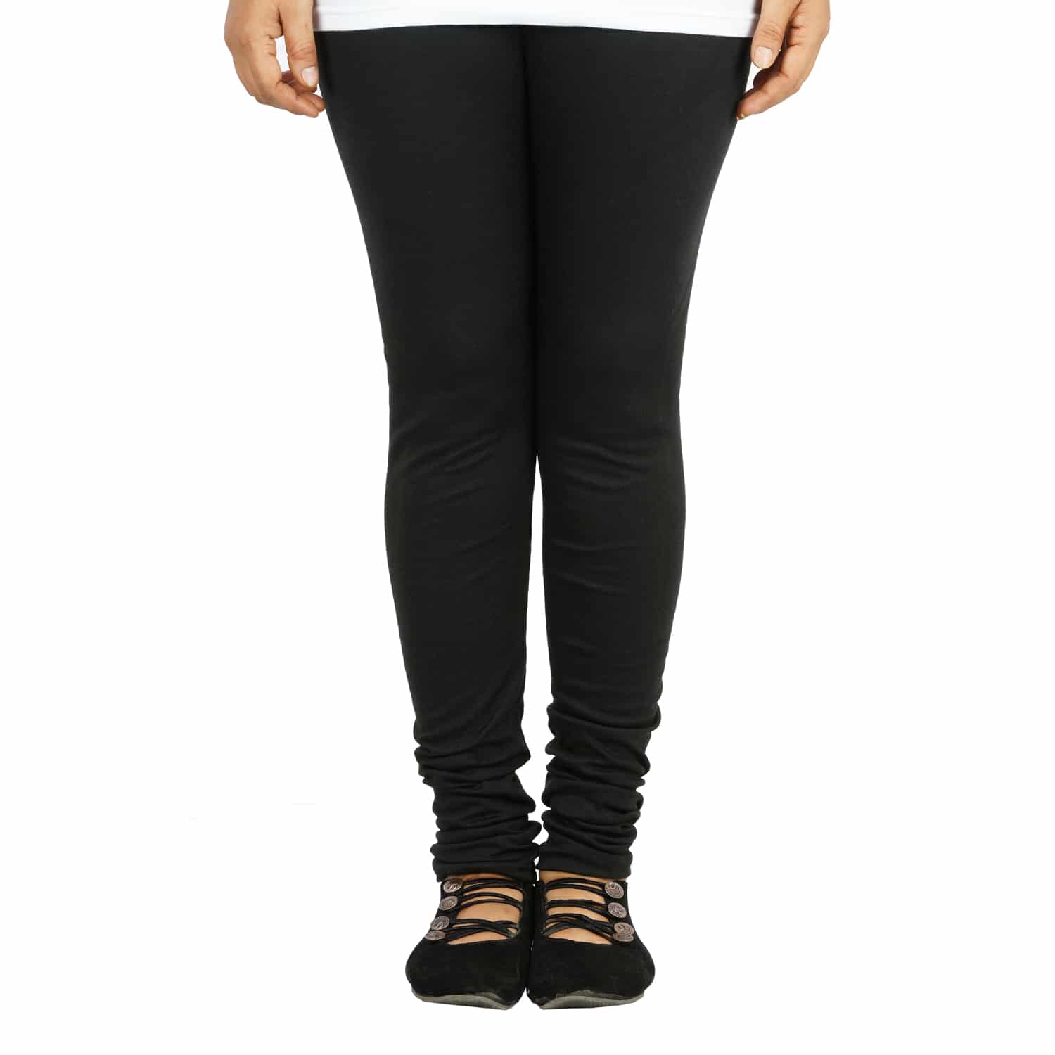 This leggings made of Cotton Lycra Knit Fabric by Double F – A smooth knit fabric comprised of natural cotton with a small percent of Spandex or Lycra. Cotton Lycra knit is known for its smooth hand, excellent stretch and recovery, and all-season comfort.This Dark Black colour leggings is very comfortable and go well with indian as well as western outfits.This leggings is very styles and durable and must have accessories
