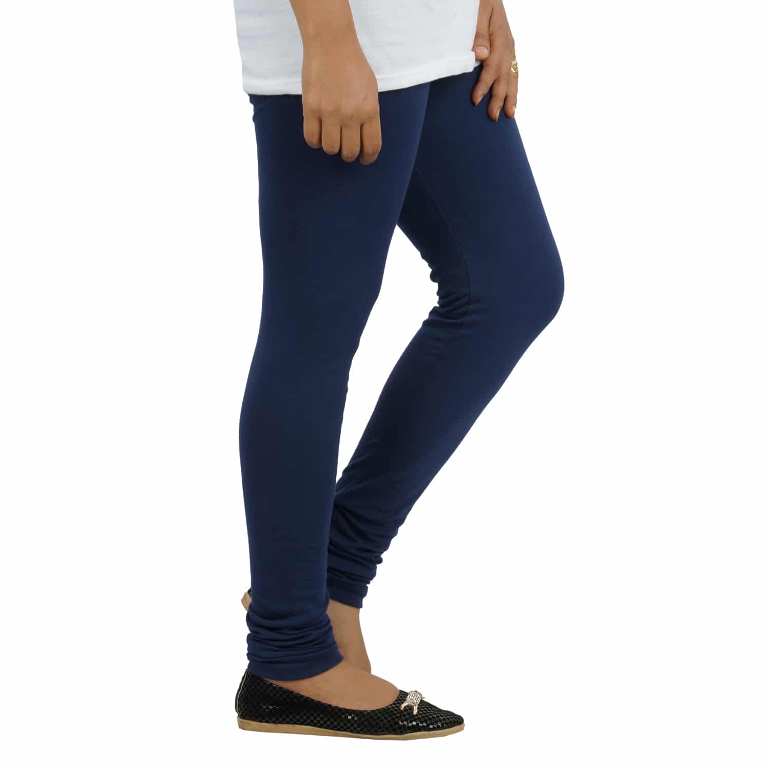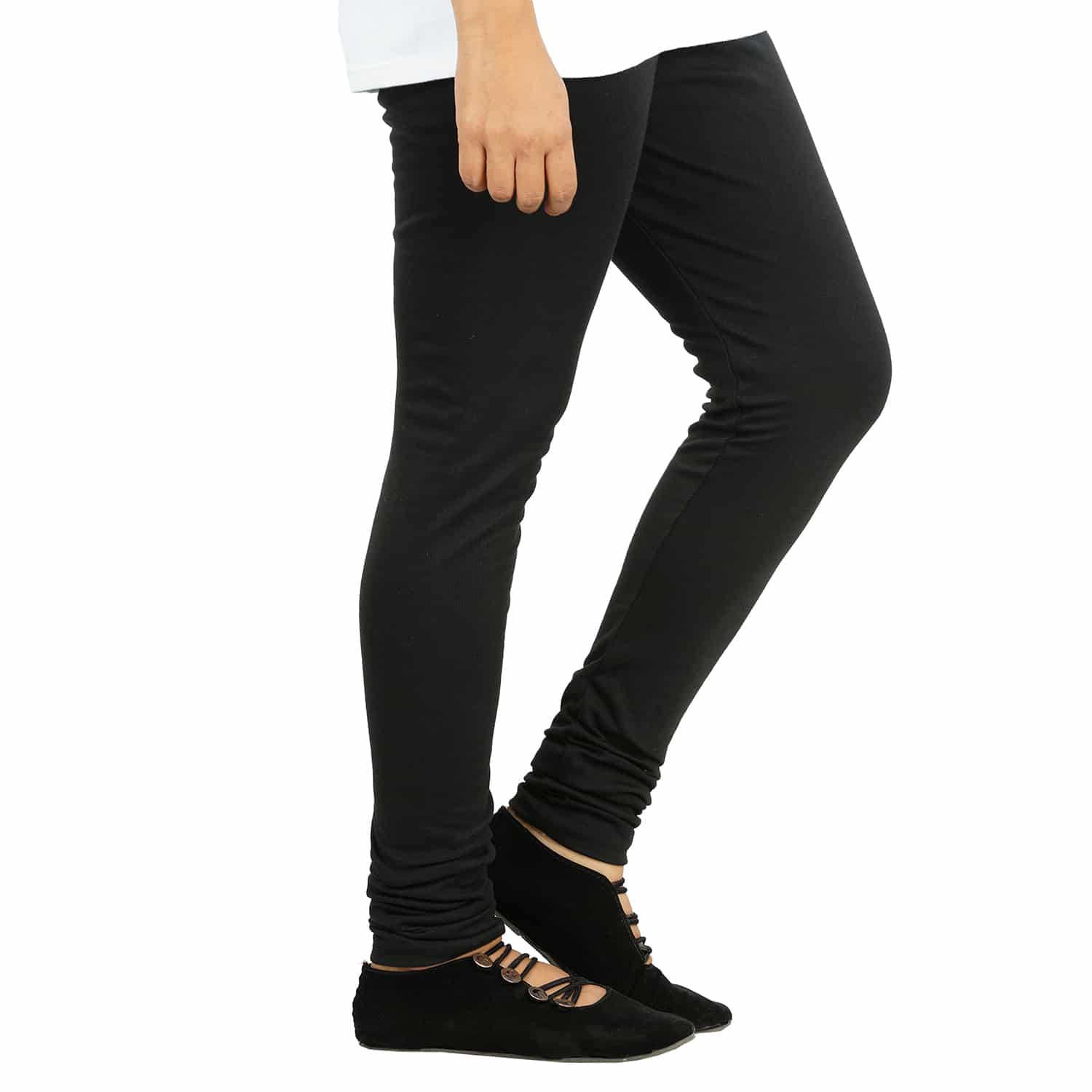This leggings made of Cotton Lycra Knit Fabric by Double F – A smooth knit fabric comprised of natural cotton with a small percent of Spandex or Lycra. Cotton Lycra knit is known for its smooth hand, excellent stretch and recovery, and all-season comfort.This Dark Black colour leggings is very comfortable and go well with indian as well as western outfits.This leggings is very styles and durable and must have accessories